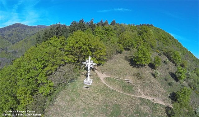 La Croix du Rangen, située à 505 m d’altitude, fait partie des étapes de notre randonnée . En effet, le parcours démarre au parking Kattenbach à Thann, qui nous amènera à la Croix du Rangen avec sa belle vue sur l’Engelbourg, Thann et le Thannerhubel. Cette croix domine la ville de Thann ainsi que son vignoble « Le Rangen« , classé parmi les 51 Grands Crus des Vins d’Alsace.