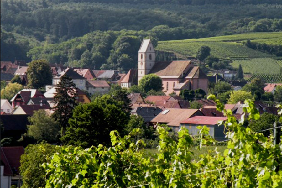 Nous partirons d’Orschwihr pour cette randonnée de dimanche après-midi. Le nom de ce village viticole du piémont des Vosges fut d’abord Otalswilre (au 8e siècle), puis Alswilre (au 14e) pour devenir Orschwihr, au gré des caprices de l’histoire. Peuplé d’un peu plus de 1000 habitants, il est essentiellement agricole, la vigne occupant environ la moitié des terres cultivées. Son vin blanc Grand Cru s’appelle le Pfingstberg, du nom du côteau orienté sud-est sur lequel poussent ses raisins : nous le verrons en passant en face, sur le Bollenberg, la plus importante des cinq collines calcaires du canton de Rouffach.
