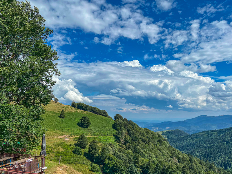 Ainsi, nous partirons du Col d’Oderen pour monter vers la Chaume des Vintergès. Après une courte pause, nous continuerons le chemin vers le Grand Ventron, non sans avoir fait la pause méridienne un peu avant, bien à l’ombre… Après avoir apprécié la vue au niveau de la table d’orientation du sommet, nous contournerons le Petit Ventron. Là encore, la vue est belle. Puis nous nous arrêterons à la Tête du Chat Sauvage pour suivre un joli sentier en forêt, avec des passages parfois caillouteux (bonnes chaussures indispensables !). Nous passerons près des Hauts de Felsach, nous arrêterons à la F.A. du Felzach. Et puis, bien sûr, retour au Col d’Oderen.
