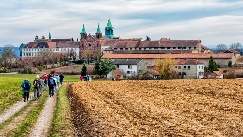 Nous partirons du couvent de l’Oelenberg et traverserons des champs à l’ouest du village. Puis nous cheminerons sur un sentier dans la forêt du Vorwald, qui compte des chênes splendides. Et c’est aussi là qu’on trouve des casemates, vestiges de la première guerre mondiale. Mais les archéologues y ont également découvert des tumuli, d’anciennes sépultures des âges du bronze et du fer. Donc mémoire également plus ancienne, qui atteste de l’implantation humaine dans ce secteur.