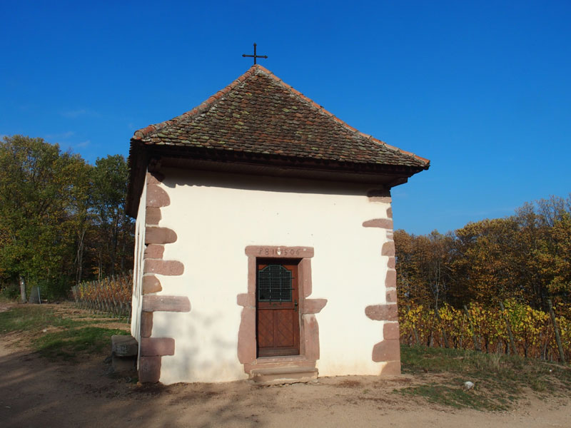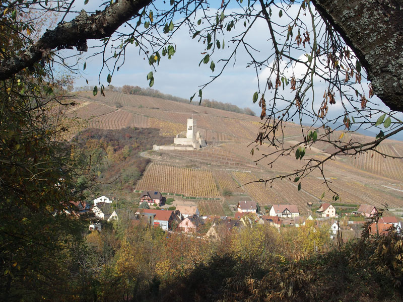 Elle mène ensuite à la chapelle St Wendelin, puis au centre du village de Niedermorschwihr, près de l’église au curieux clocher vrillé. De là, elle chemine vers Katzenthal et le château du Wineck via Wineckwald, et rejoint Niedermorschwihr pour revenir à Turckheim en passant par les côteaux du Brand, un grand cru d’Alsace rénommé. D’ailleurs, nous aurons aussi l’occasion de passer par le Sommerberg, autre grand cru d’Alsace.